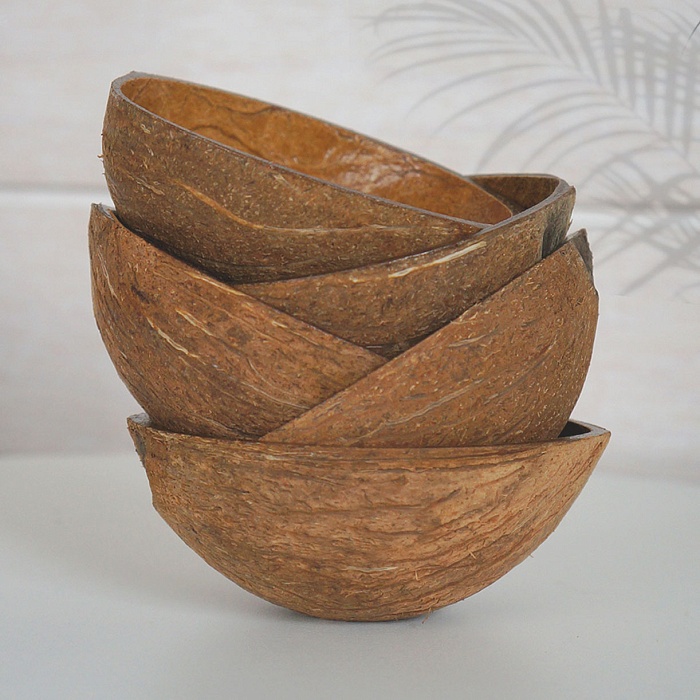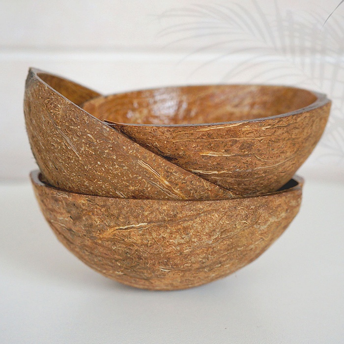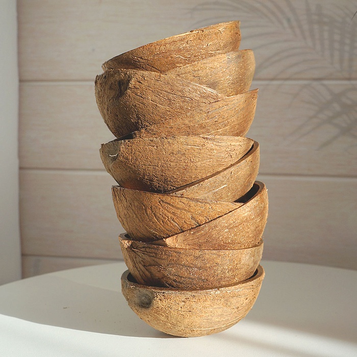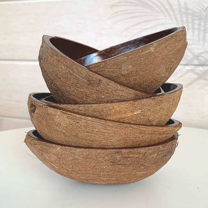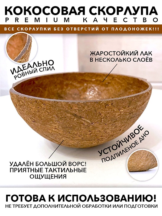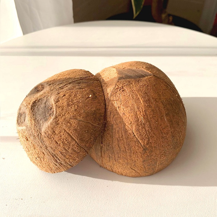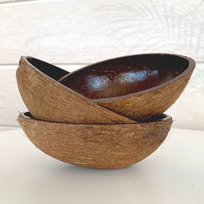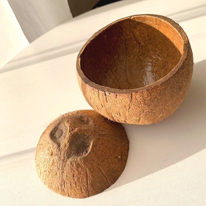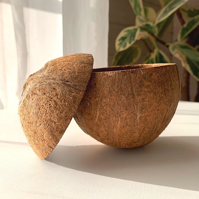 Скорлупа кокоса, для изготовления свечей, половинки, обработанная, светлый лак