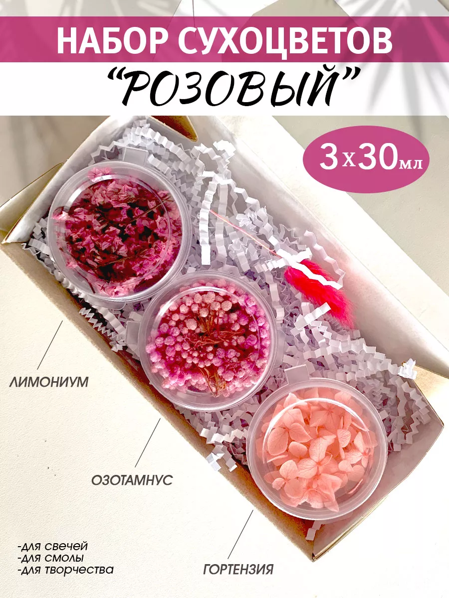 Набор сухоцветов для творчества "Розовый" представляет собой коллекцию изысканных стабилизированных цветов.